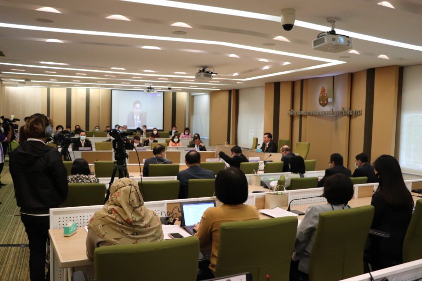 นายอัมพร พินะสา เลขาธิการ กพฐ. กล่าวว่า สำหรับการประชุมทางไกลครั้งนี้ เพื่อที่จะสื่อสารทำความเข้าใจ แนวทางในการดำเนินงานของ สพฐ. ไปยังสำนักงานเขตพื้นที่การศึกษาและสถานศึกษาทั่วประเทศ ในเรื่องหลักๆ ที่สำคัญ คือ การบริหารจัดการภายใต้สถานการณ์การแพร่ระบาดของโรคติดเชื้อไวรัสโคโรนา 2019 (COVID-19) ซึ่งเราพบว่าการแพร่ระบาดครั้งใหม่นี้มีความรุนแรง มีปริมาณการขยายตัวในวงกว้างและรวดเร็วมากกว่าครั้งที่ผ่านมา ดังนั้นเพื่อเป็นการเตรียมความพร้อมรองรับสถานการณ์ ให้เป็นไปตามมาตรการของ ศบค. จึงได้เน้นย้ำใน 3 เรื่อง คือ สำนักงานเขตพื้นที่การศึกษาและสถานศึกษาทุกแห่ง ต้องสื่อสารสร้างความเข้าใจพร้อมดำเนินการตามมาตรการเพื่อให้นักเรียนหรือบุคลากรปลอดภัยจากการติดเชื้อโควิด-19 โดยปฏิบัติตามมาตรการของ ศบค. ทั้งในเรื่องการเว้นระยะห่าง การล้างมือ การใส่หน้ากากอนามัย การดูแลสุขอนามัย และการเปิด-ปิดสถานศึกษาในกรณีที่จำเป็น รวมถึงปฏิบัติตามประกาศของกระทรวงศึกษาธิการ และปฏิบัติตามประกาศของจังหวัดแต่ละจังหวัด โดยคำนึงถึงความปลอดภัยของนักเรียนและบุคลากรเป็นสำคัญ